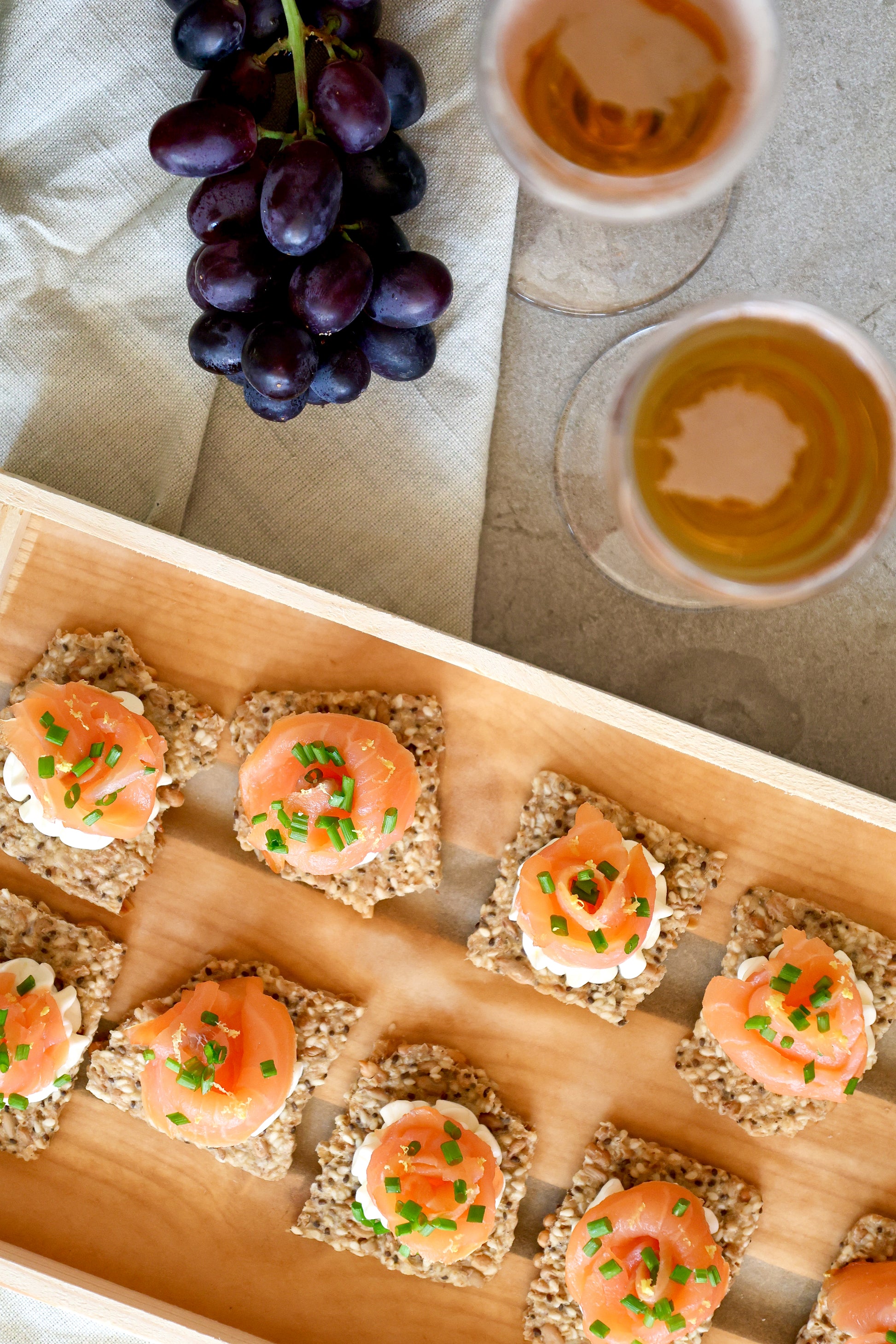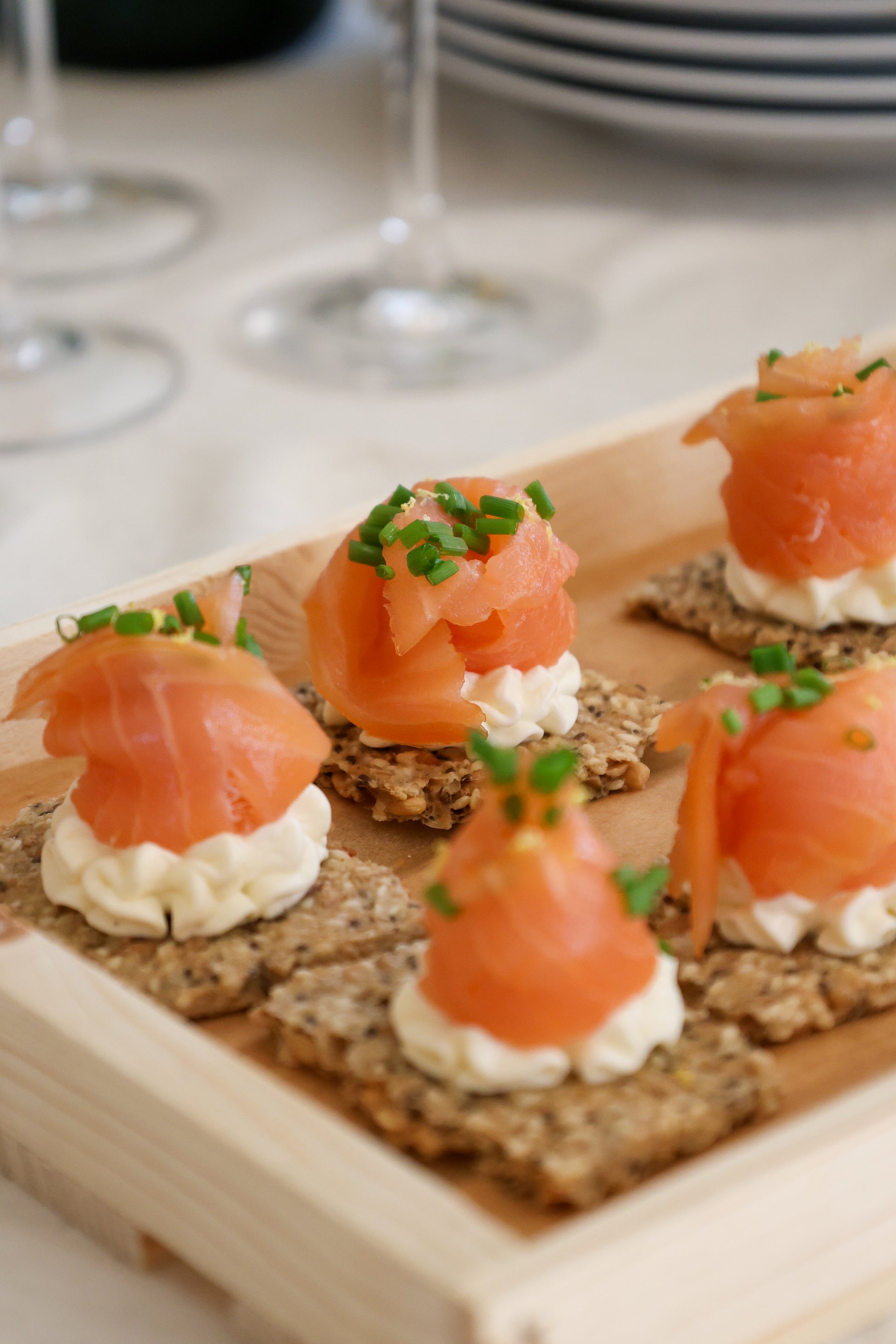 Glutenfritt fröknäcke med rökt lax & citronkräm. (Minimum beställning 8st, 35kr/styck)