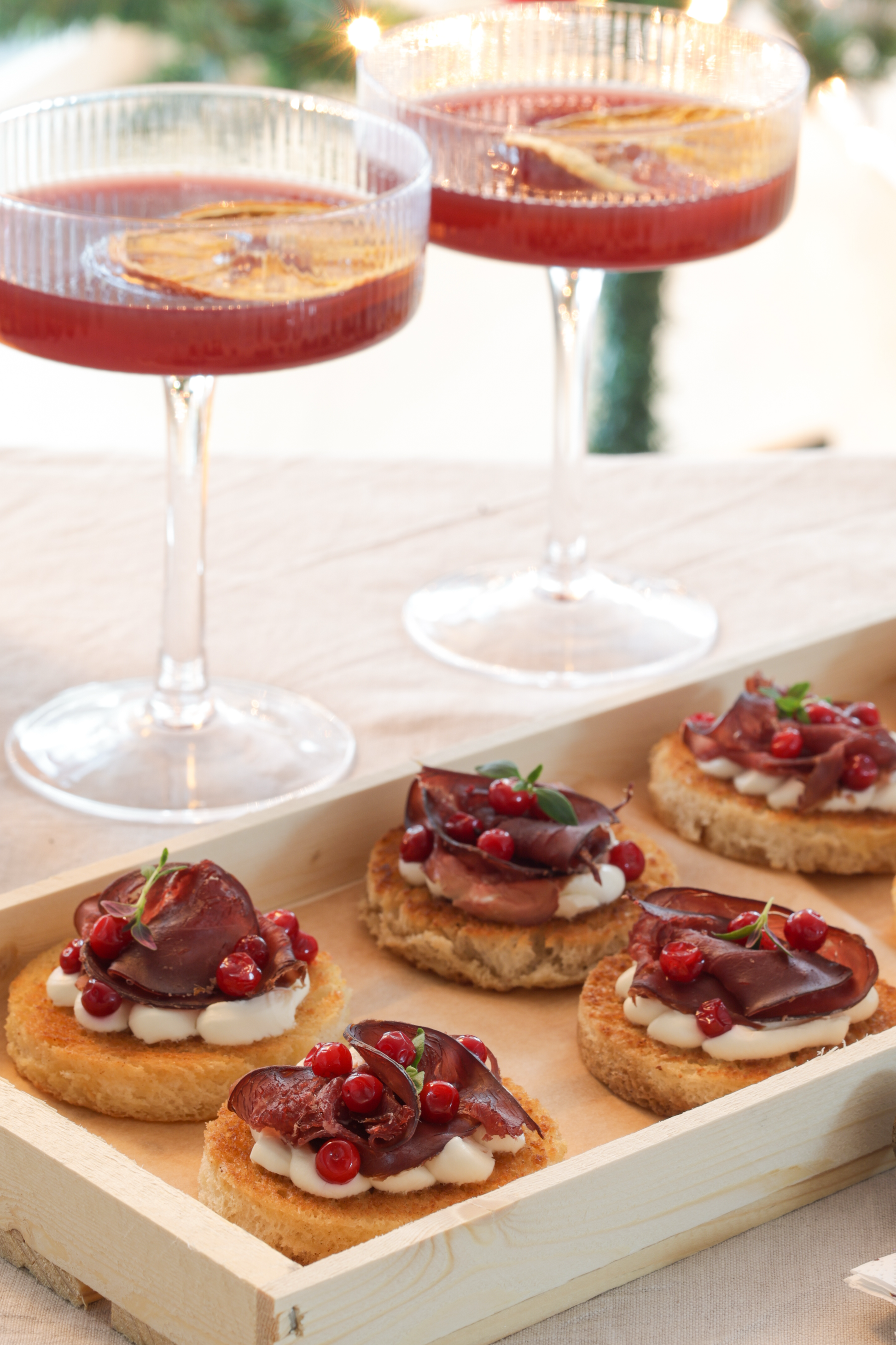 Snitt med kallrökt renstek & rårörda lingon (Minimum beställning 8st, 40kr/styck)